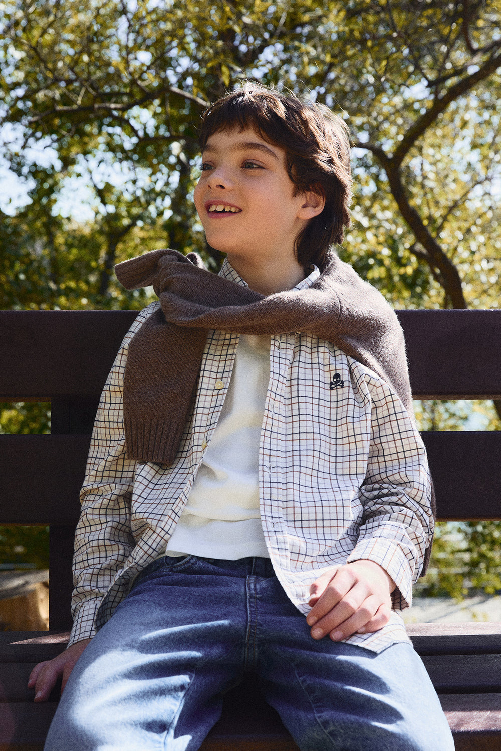 Camisa Oxford confeccionada en 100% algodón BCI. Manga larga. Puños ajustable con botón. Cierre mediante botones en frontal. Calavera bordada a contraste en pecho.