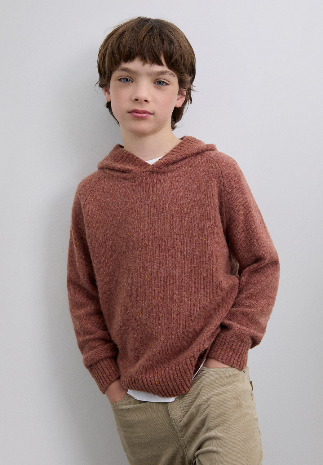 Jersey de punto confeccionado en mezcla de lana tweed con capucha. Manga larga. Calavera bordada a contraste en el bajo.