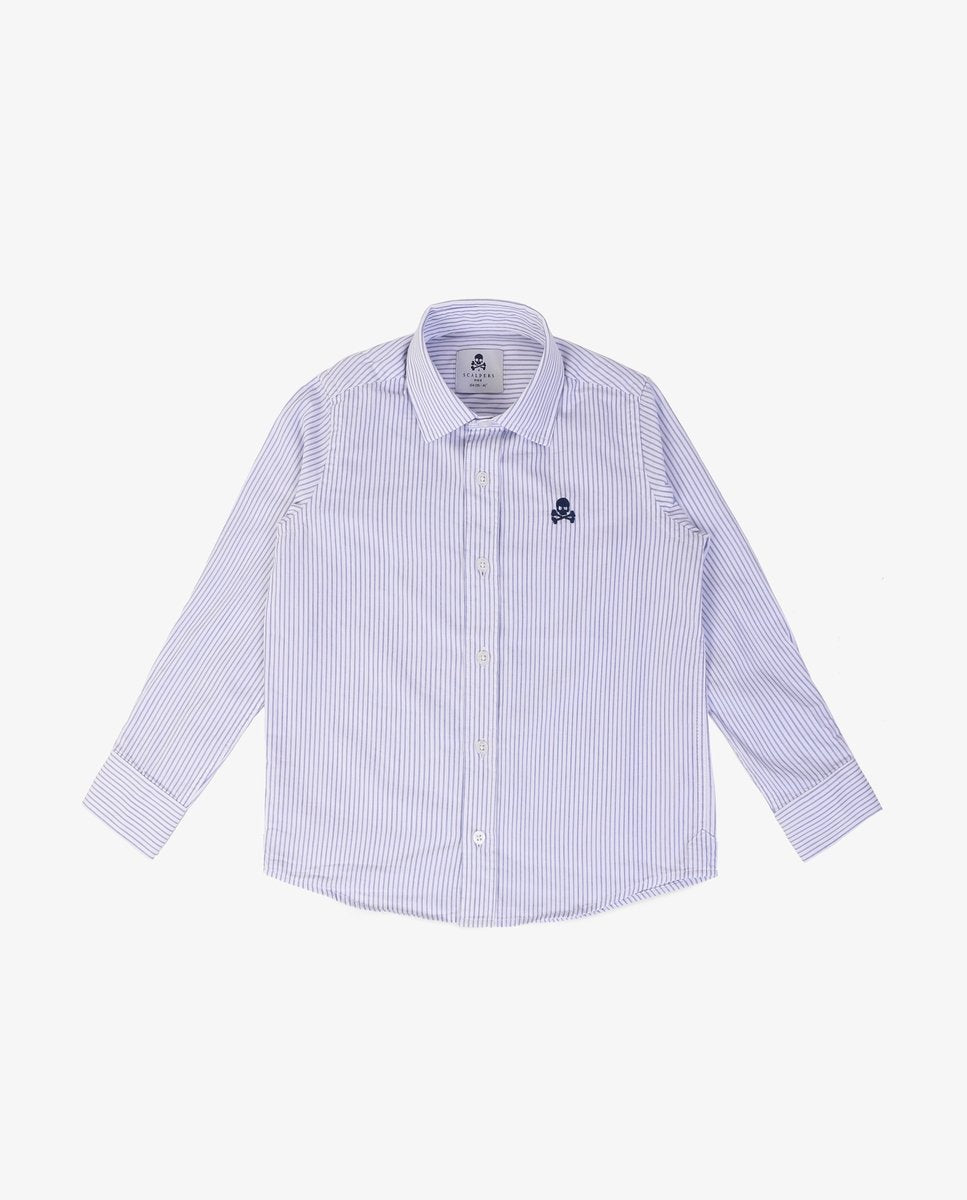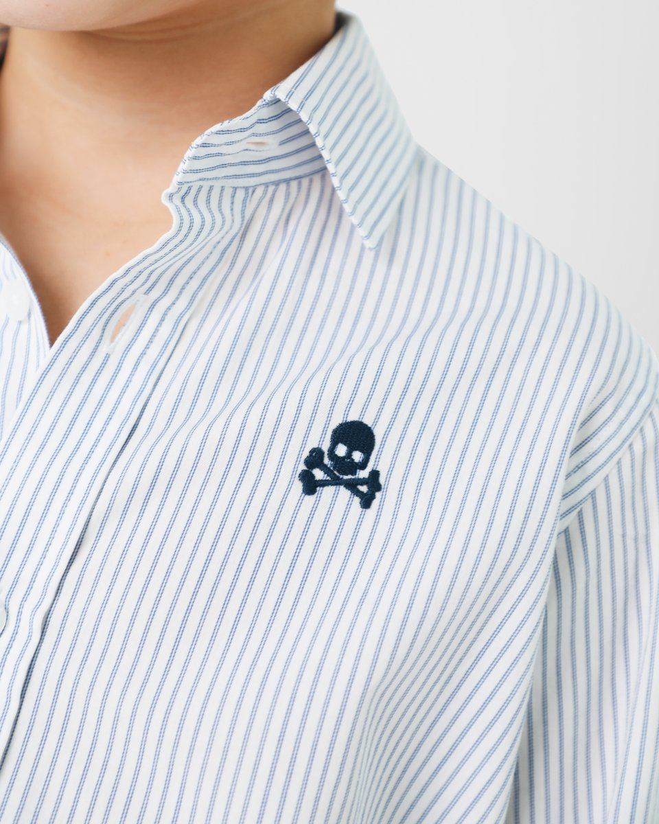 Camisa de vestir confeccionada en tejido 100% algodón. Corte recto, cuello siena y cierre con botones. Manga larga y detalle de calavera bordada en el pecho. Disponible en varios colores.