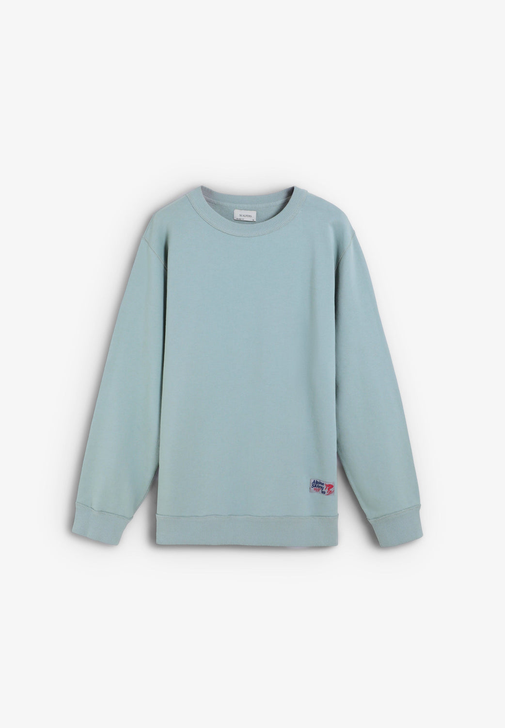 Sudadera confeccionada en 100% algodón BCI. Cuello redondo. Relaxed fit. Print a contraste en espalda. Puños y bajo de canalé. Detalle de etiqueta en bajo izquierdo.