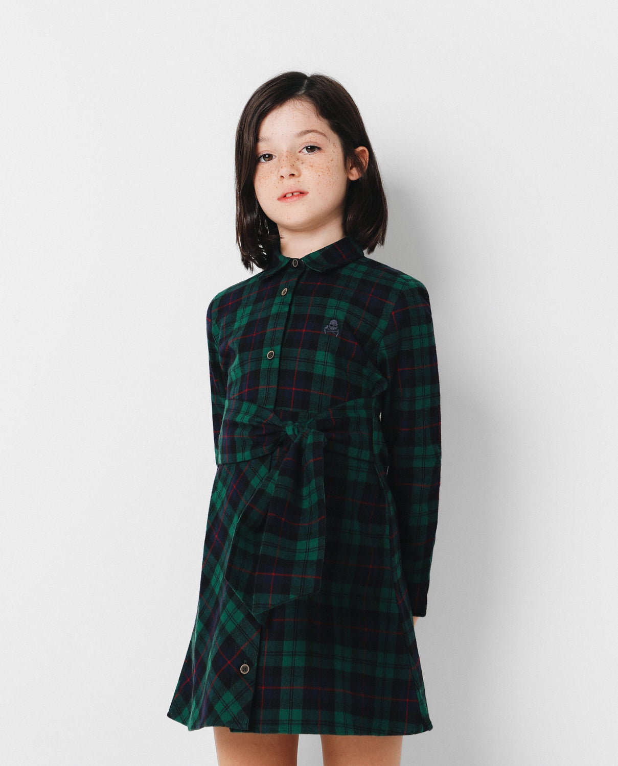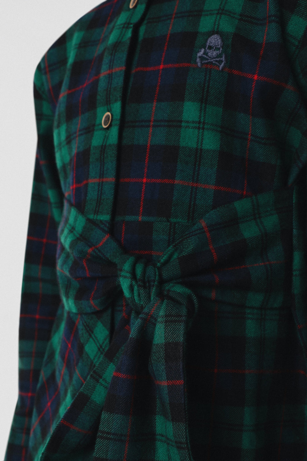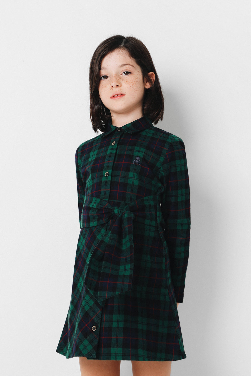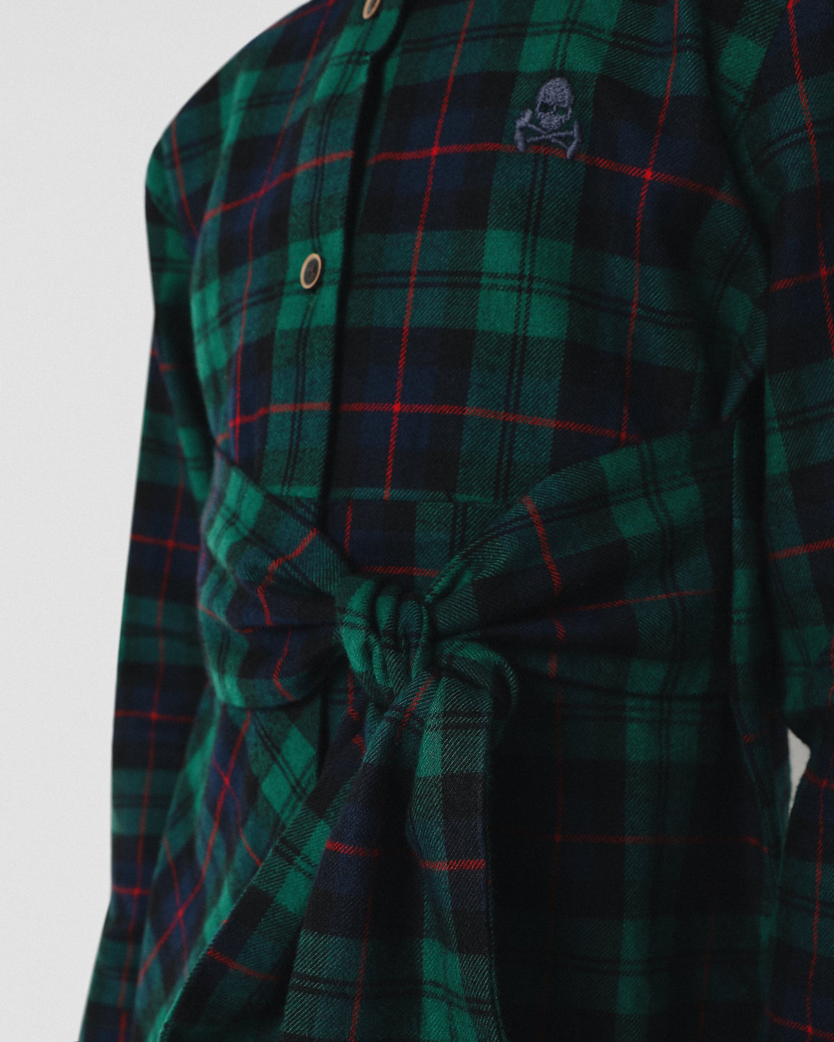Vestido tartán confeccionado en tejido de algodón. Corte Regular Fit, cierre de tapeta con botones. Falso cinturón anudado a la altura de la cintura. Tabla trasera completamente cosida. Bordado calavera en el pecho.