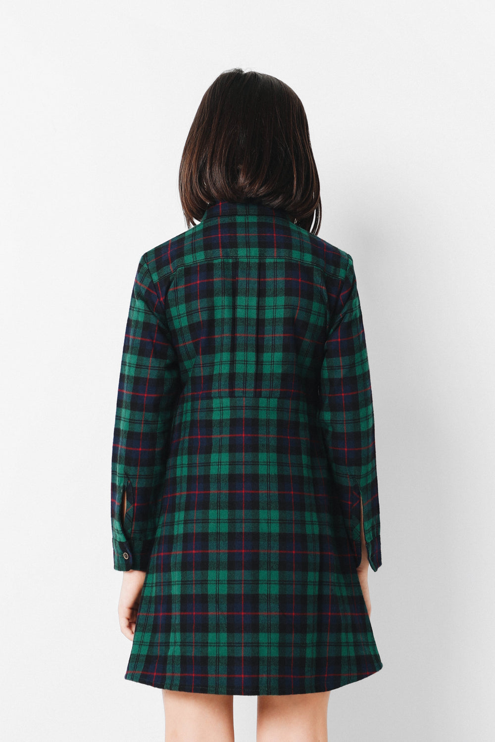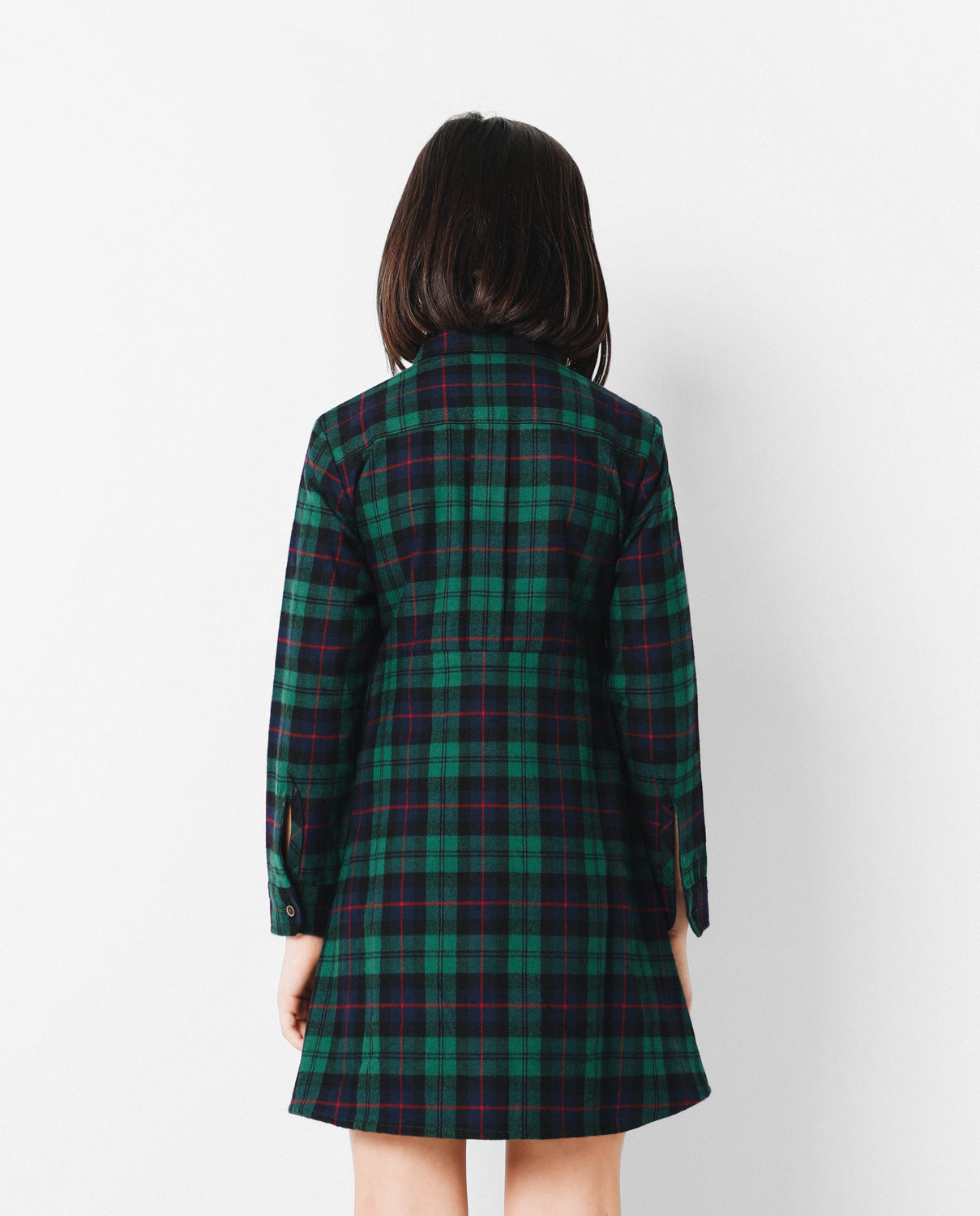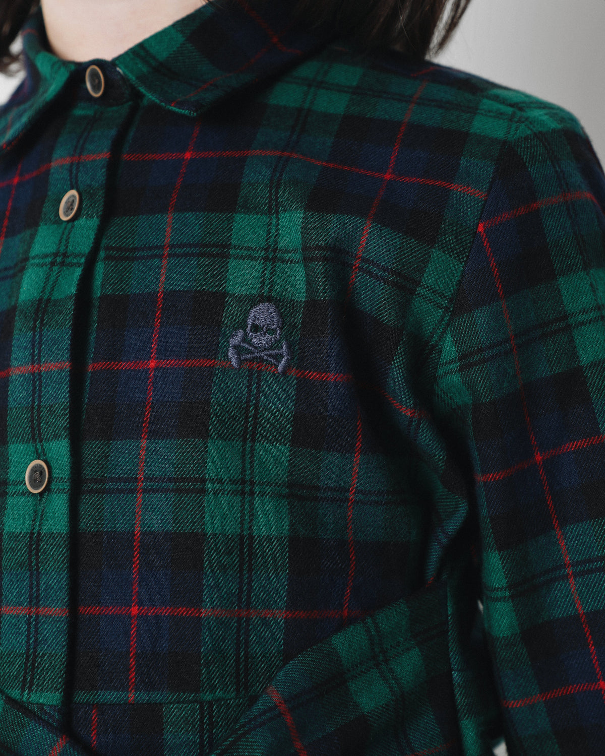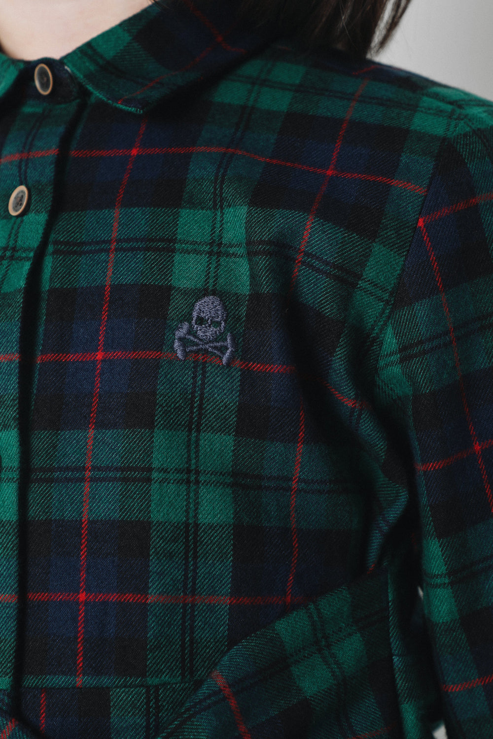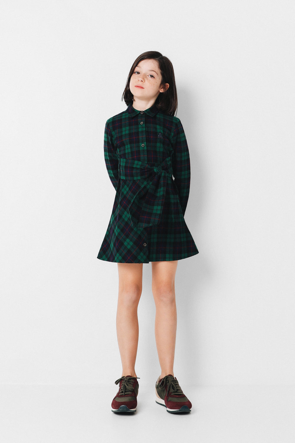 Vestido tartán confeccionado en tejido de algodón. Corte Regular Fit, cierre de tapeta con botones. Falso cinturón anudado a la altura de la cintura. Tabla trasera completamente cosida. Bordado calavera en el pecho.