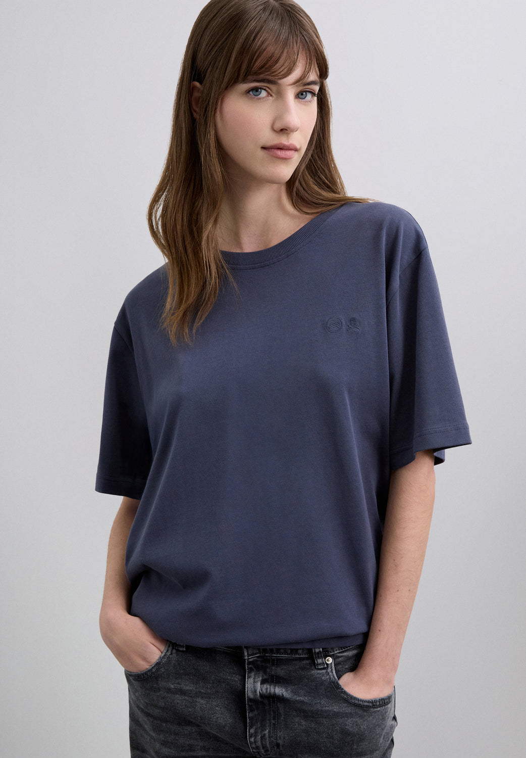 Camiseta confeccionada en 100% algodón BCI. Manga corta. Cuello redondo. Print en espalda. Bordado a tono en pecho. Detalle de etiqueta en manga derecha.