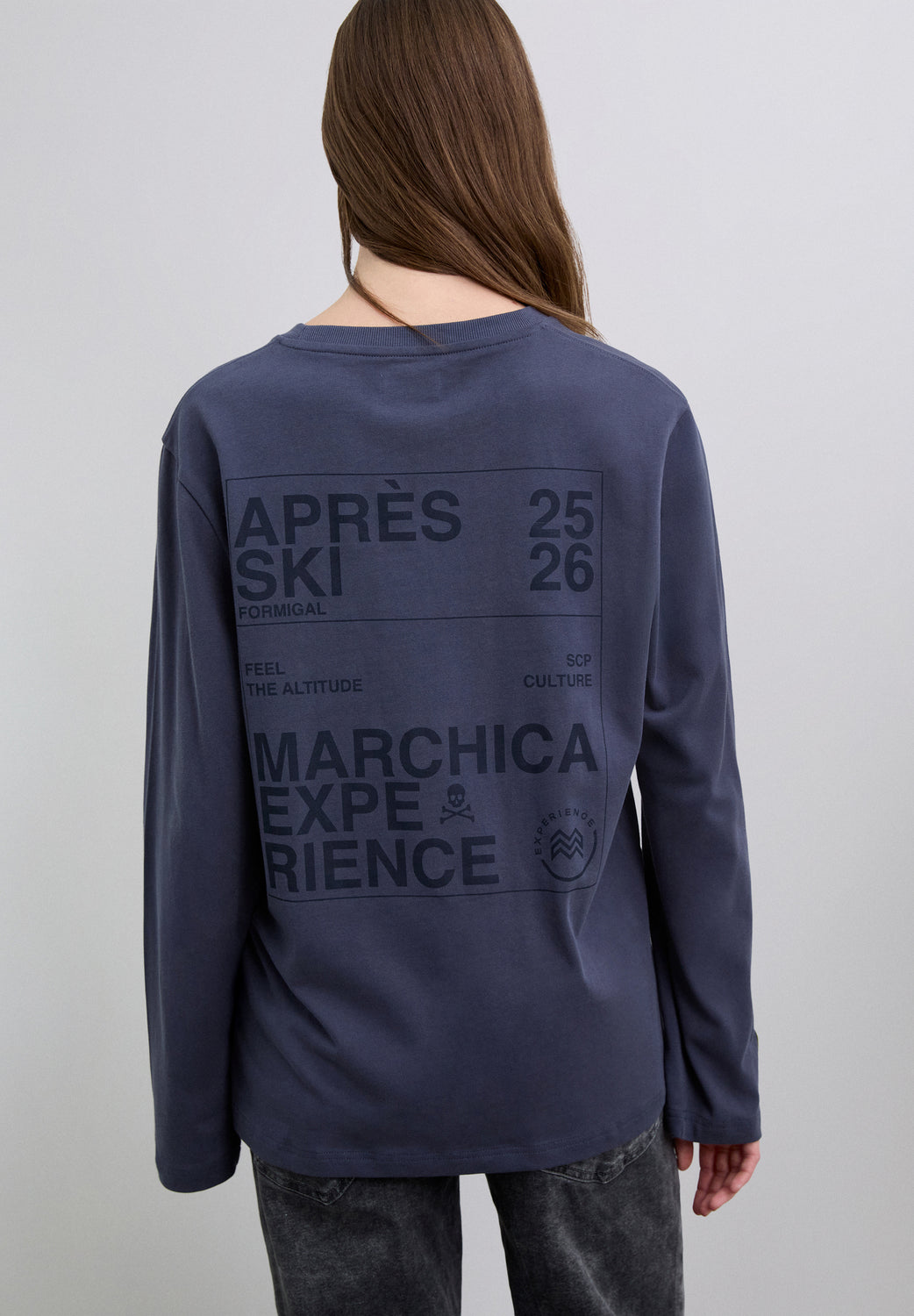 Camiseta confeccionada en 100% algodón BCI. Manga larga. Cuello redondo. Estampado en espalda. Bordado a tono en pecho. Detalle de etiqueta en manga derecha.