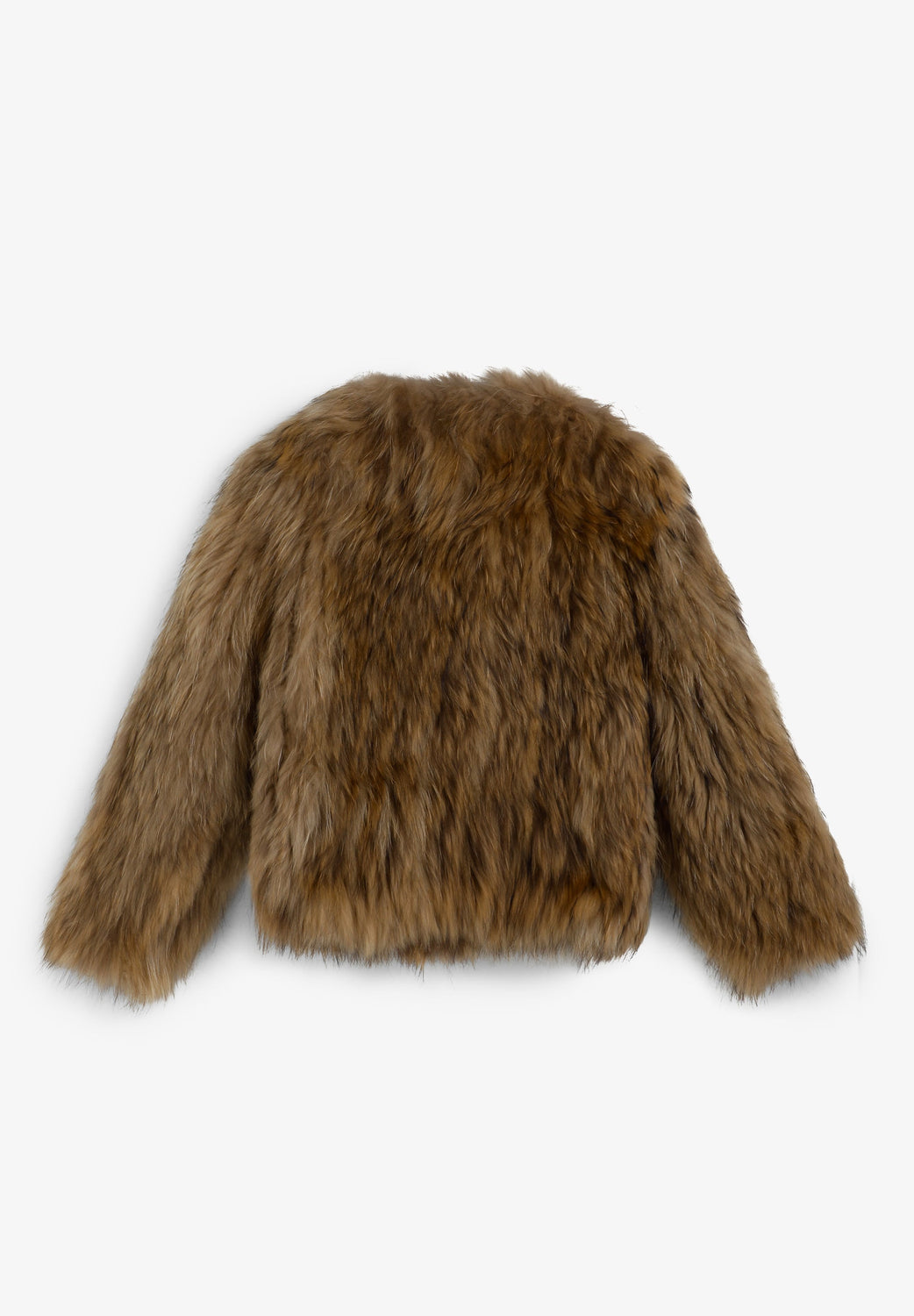 Chaqueta premium confeccionada 100% pelo de mapache certificado natural. Manga larga. Corte medio a la cadera.