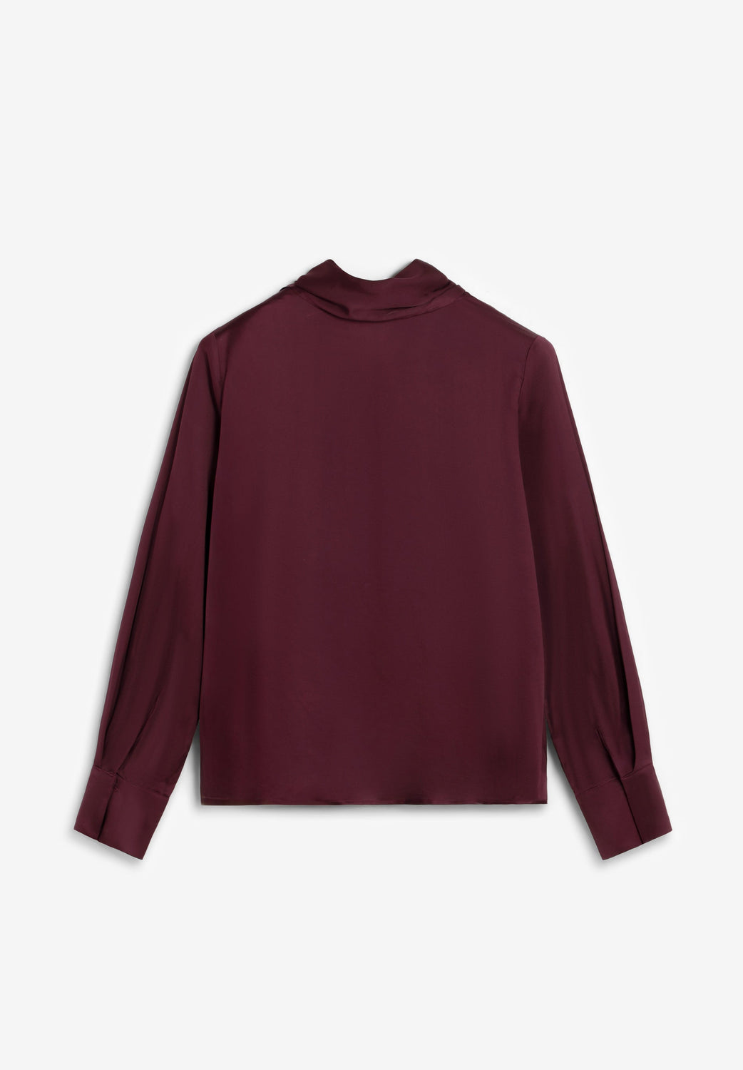 Blusa satinada de manga larga. Cuello drapeado y lazo ajustable.
