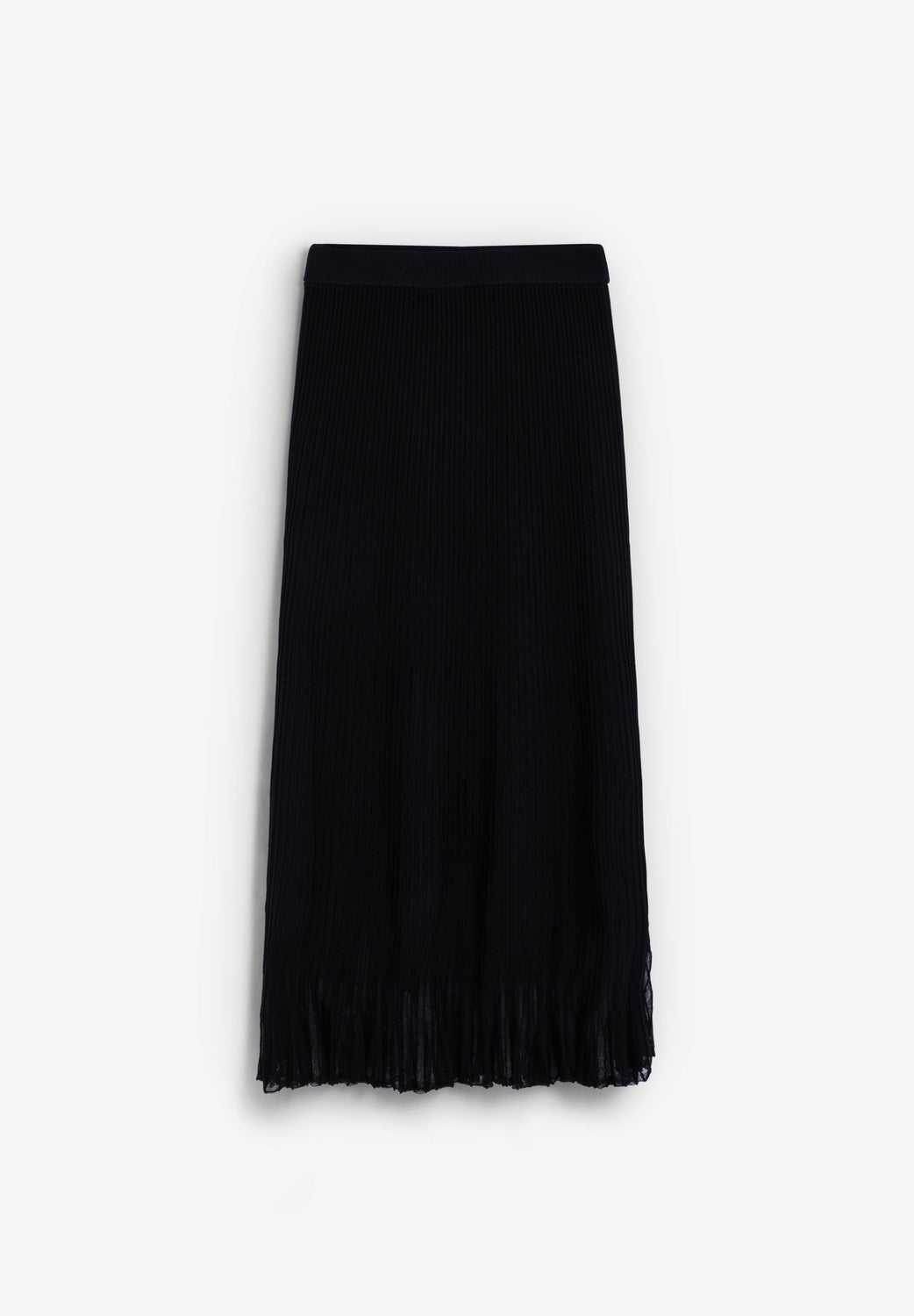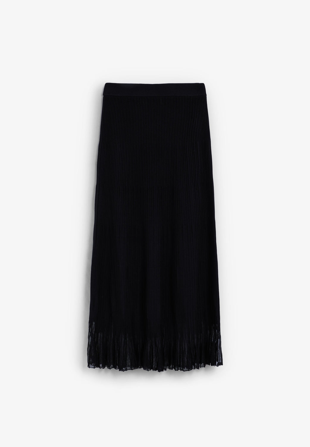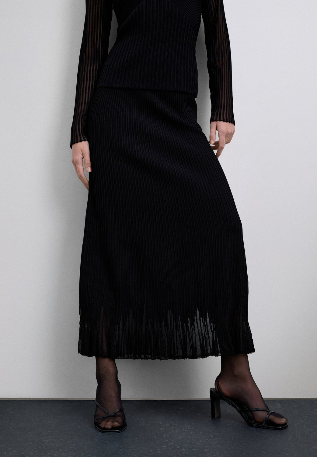 Falda confeccionada en punto ligeramente elástico con detalles de rayas y transparencias. Corte Slim Fit. Midi.