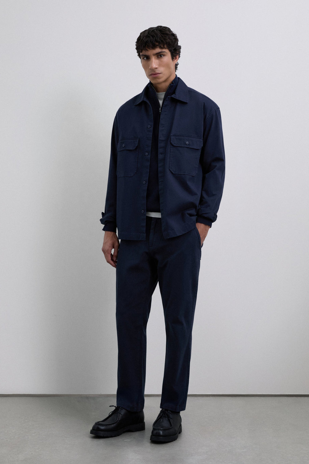 Pantalón de sarga confeccionado en 100% algodón BCI. Regular fit. Cierre mediante cremallera y abotonadura frontal. Bolsillos laterales y en espalda. Detalle de etiqueta en bolsillo derecho posterior. Trabillas en cintura.