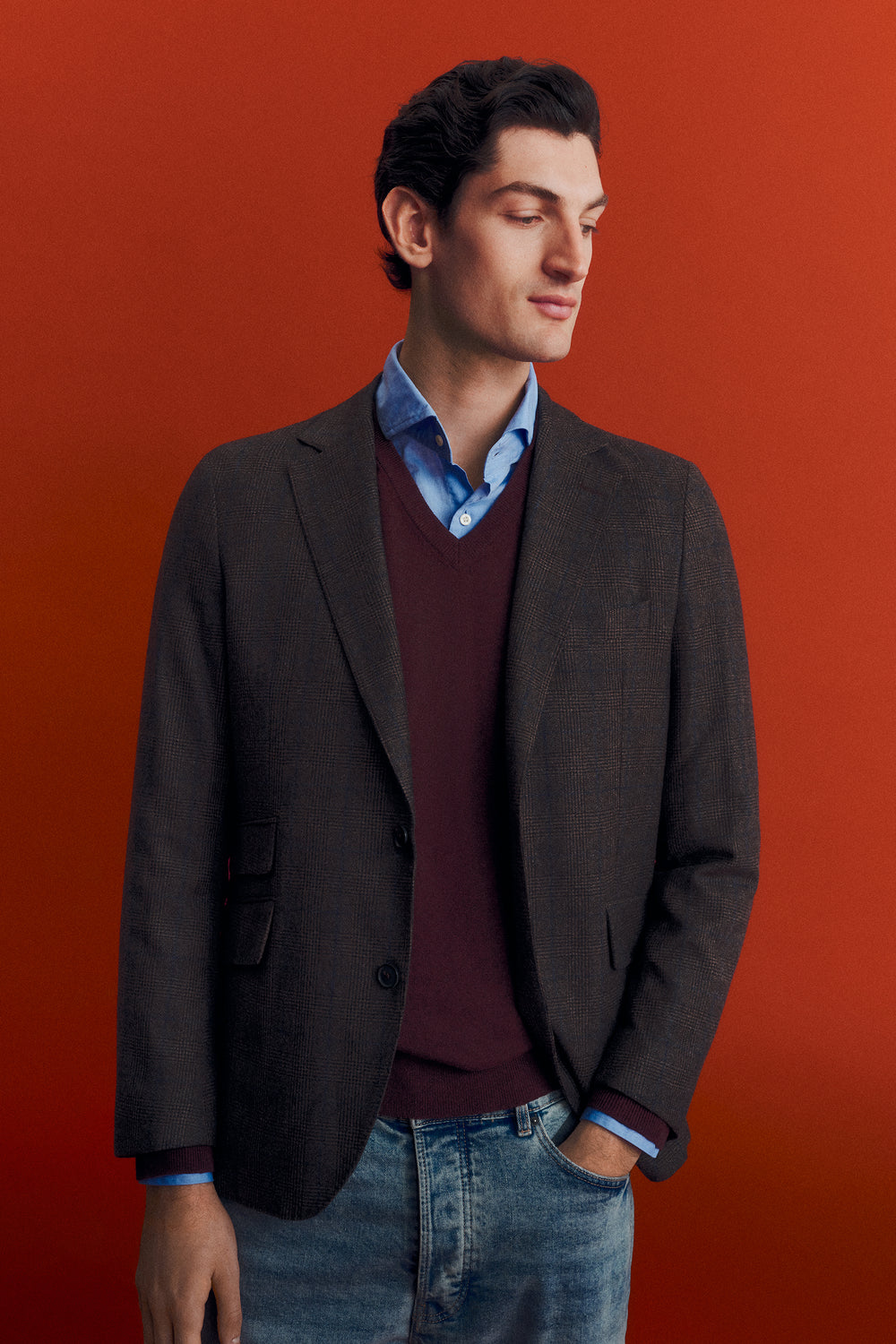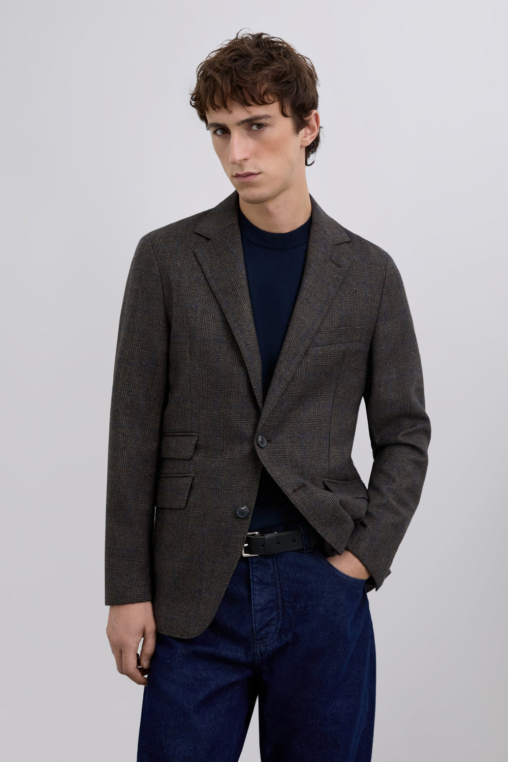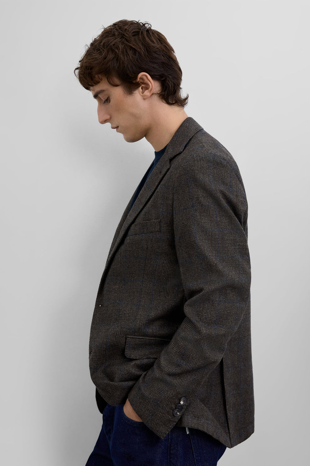 Americana confeccionada en 100% lana. Regular fit. Estampado de cuadros. Cuello con solapa de muesca. Cierre con botones. Bolsillos con solapa y cerillero. Manga larga acabada en puño con botones practicables.