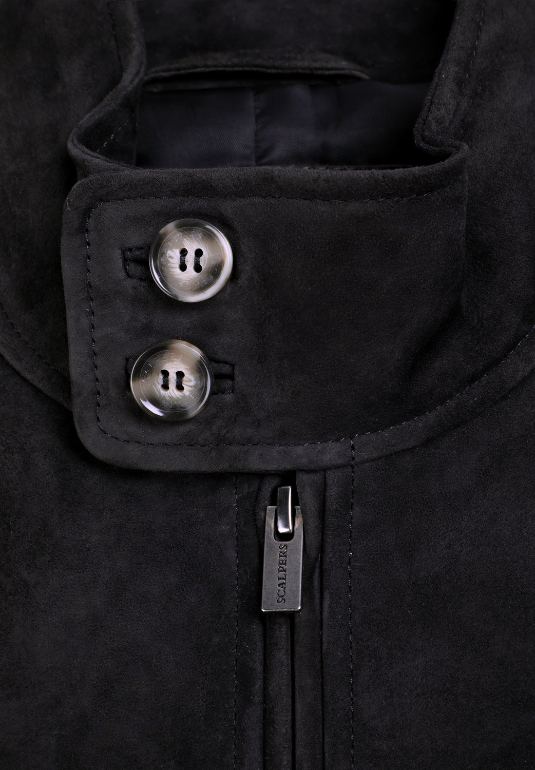 Chaqueta confeccionada 100% piel de cabra. Cremallera de doble carro. Puños y cintura acanalados. Dos bolsillos laterales con cierre de botón. Cuello de cierre dos botones.