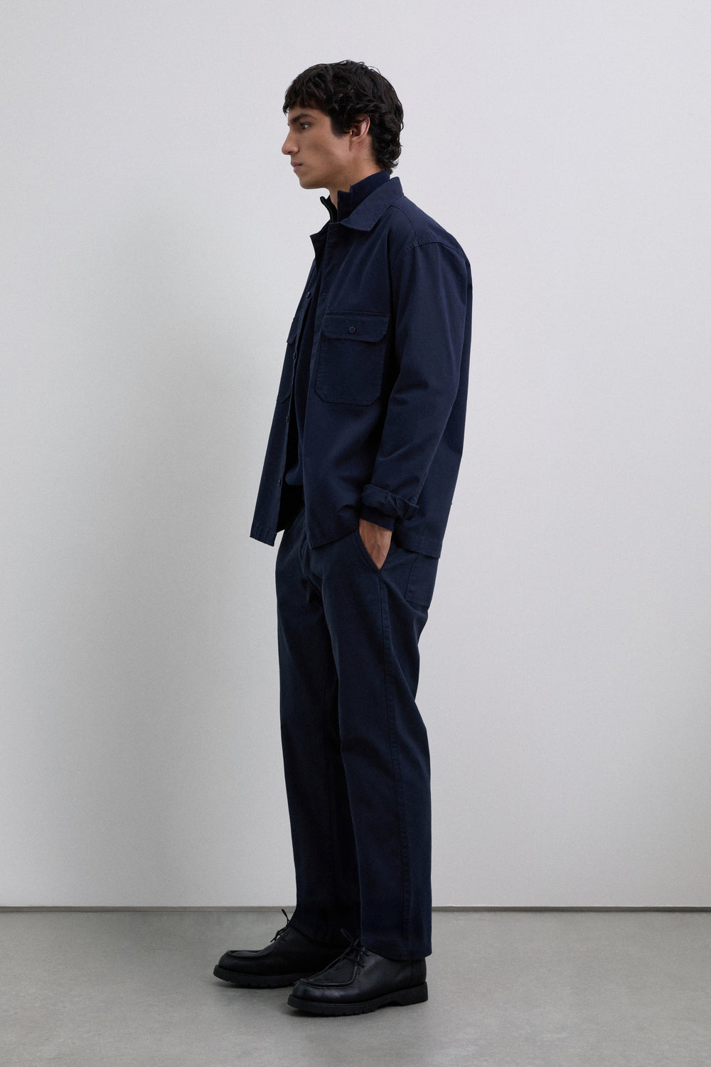 Pantalón de sarga confeccionado en 100% algodón BCI. Regular fit. Cierre mediante cremallera y abotonadura frontal. Bolsillos laterales y en espalda. Detalle de etiqueta en bolsillo derecho posterior. Trabillas en cintura.