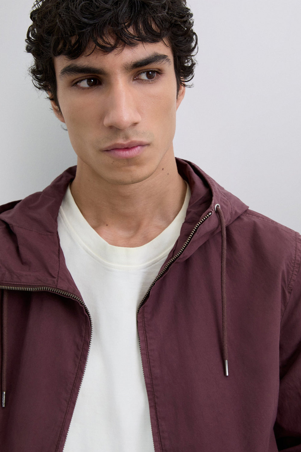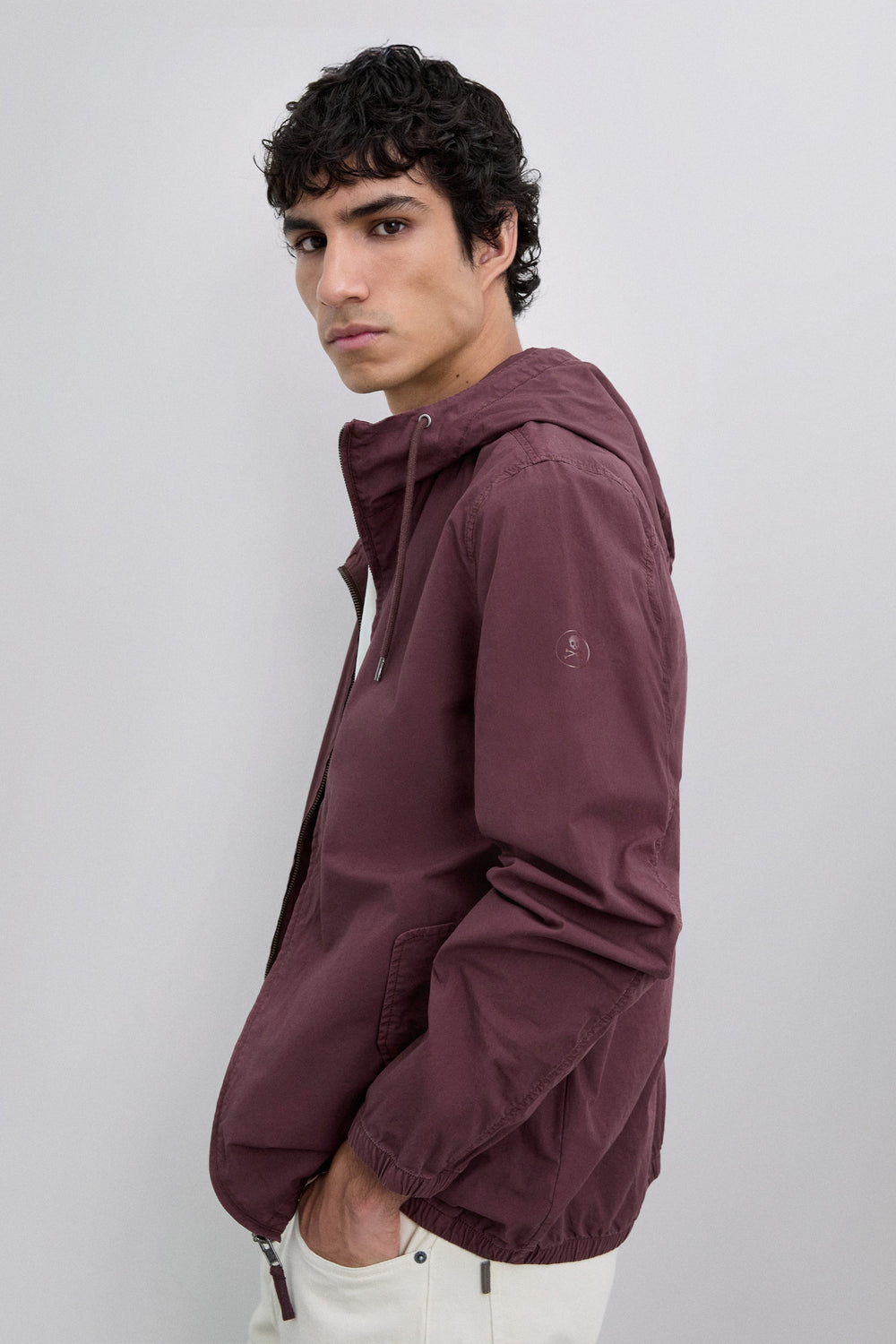 Chaqueta ligera confeccionada en 100% algodón BCI. Regular fit. Cuello con capucha ajustable con cordón y cierre con cremallera. Manga larga. Bolsillos frontales con tapeta. Forro interior. Detalle de logotipo a tono en manga.