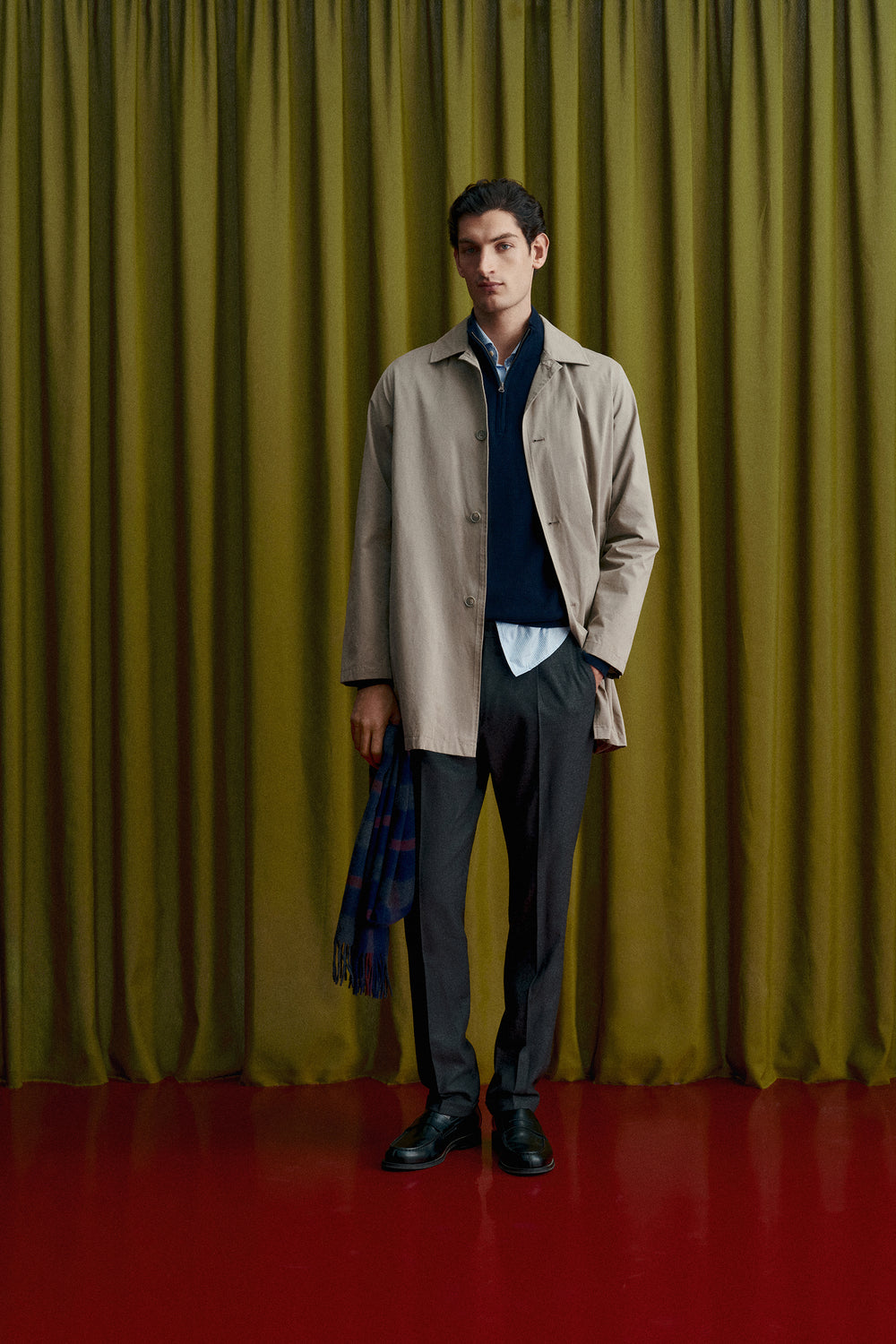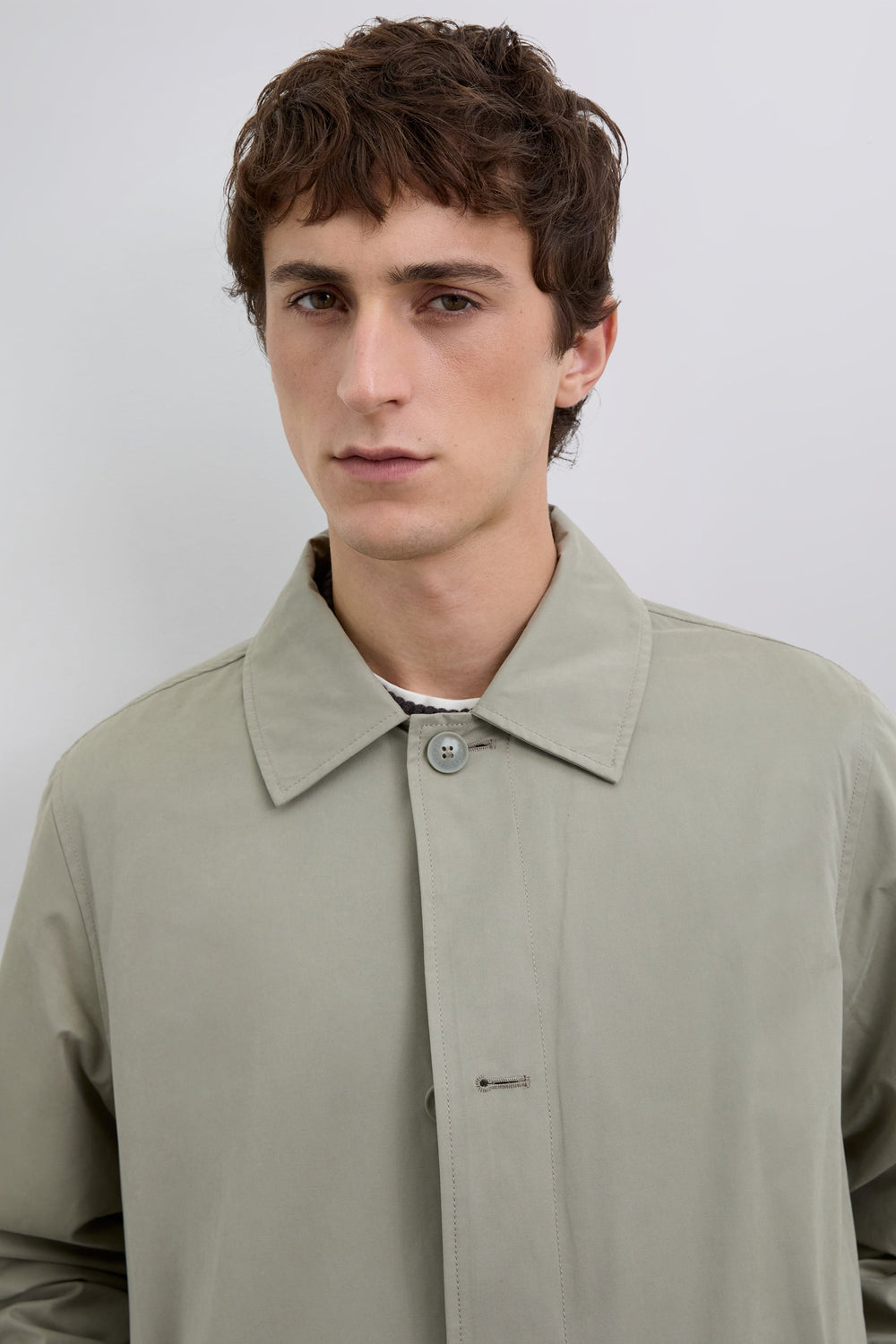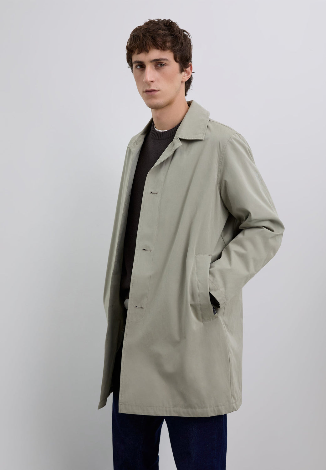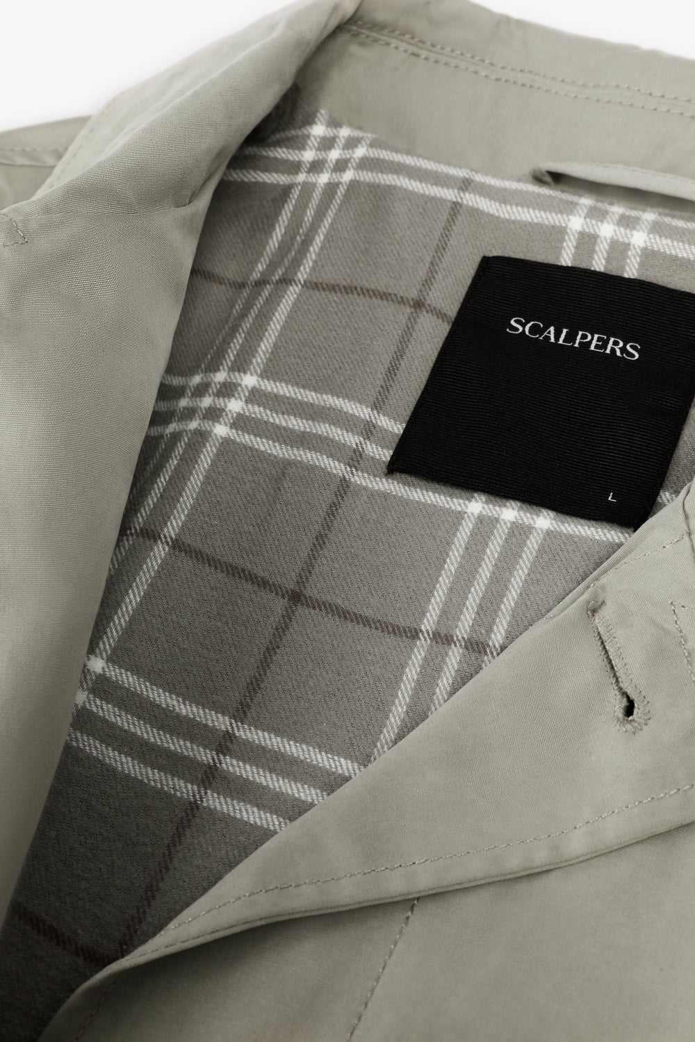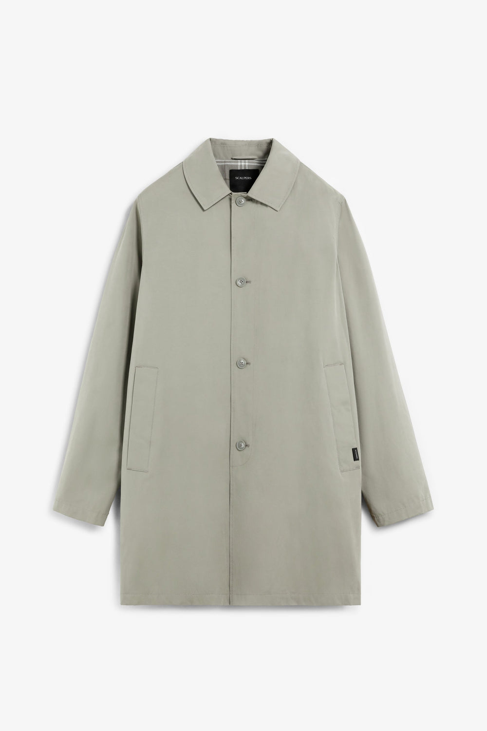 Gabardina con cierre de botones en la parte delantera. Cuello de camisa. Dos bolsillos laterales. Interior forrado con motivo cuadros. Detalle de etiqueta con logo en bolsillo. Print de calavera en manga a tono.