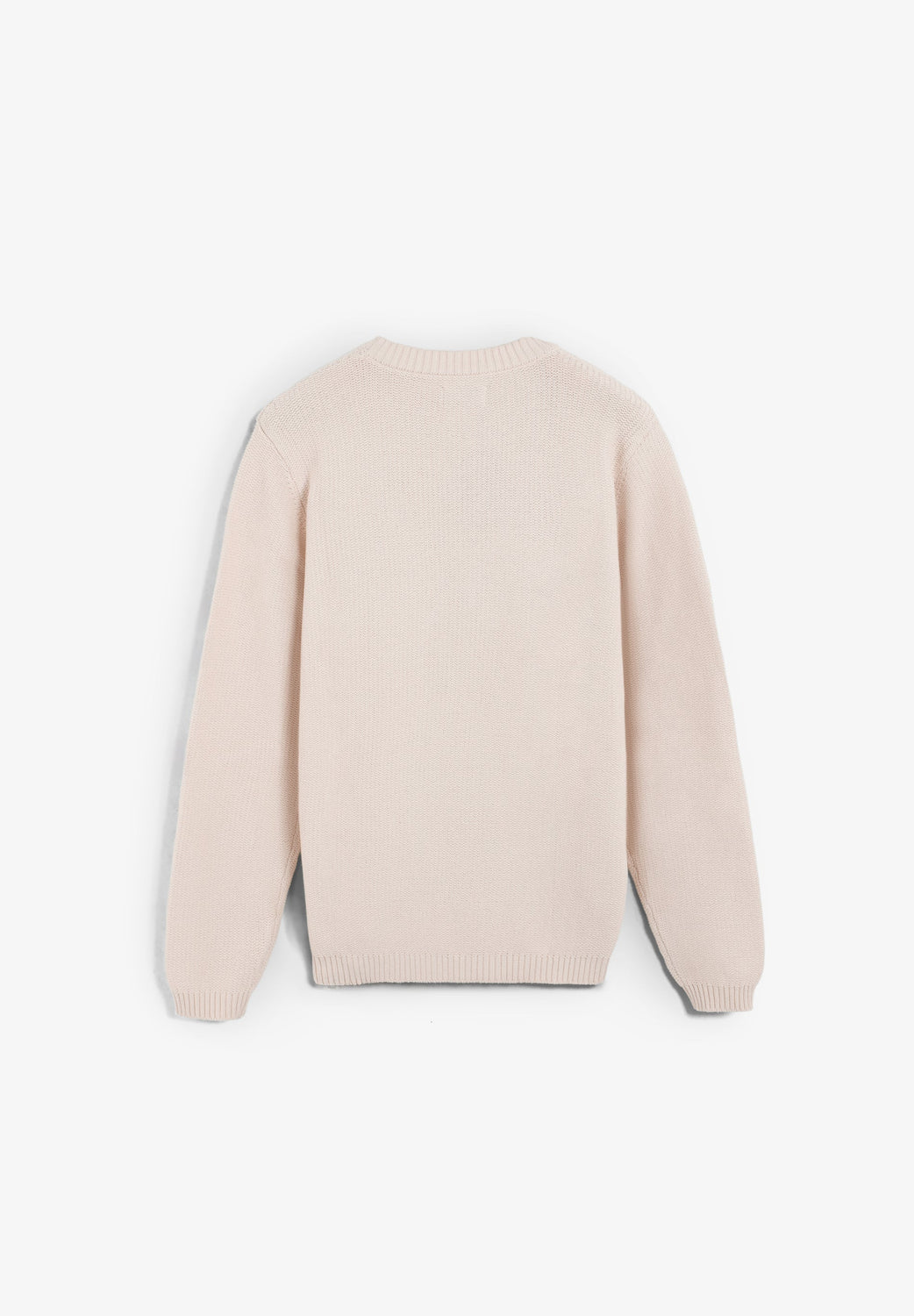 Jersey confeccionado en 100% algodón BCI. Cuello redondo. Manga larga. Corte Regular. Acabados en rib.