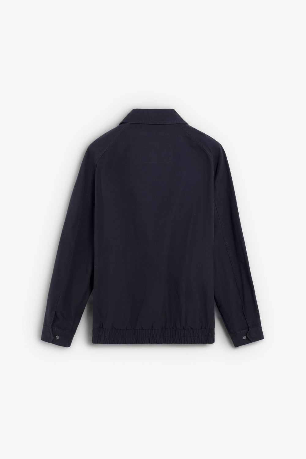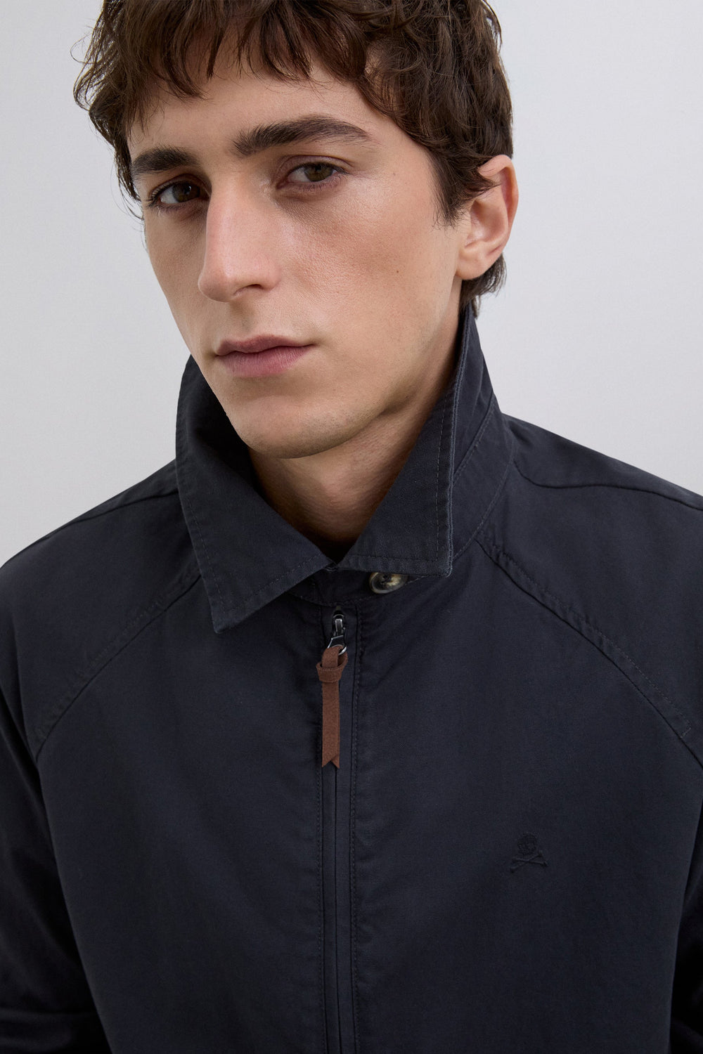 Chaqueta Bomber confeccionada en tejido 100% algodón BCI. Corte ajustado. Cremallera de dos vías. Puños, cintura y cuello acanalados. Dos bolsillos frontales. Forro 100% algodón BCI. Logo bordado.