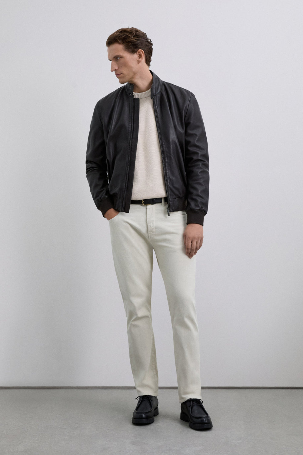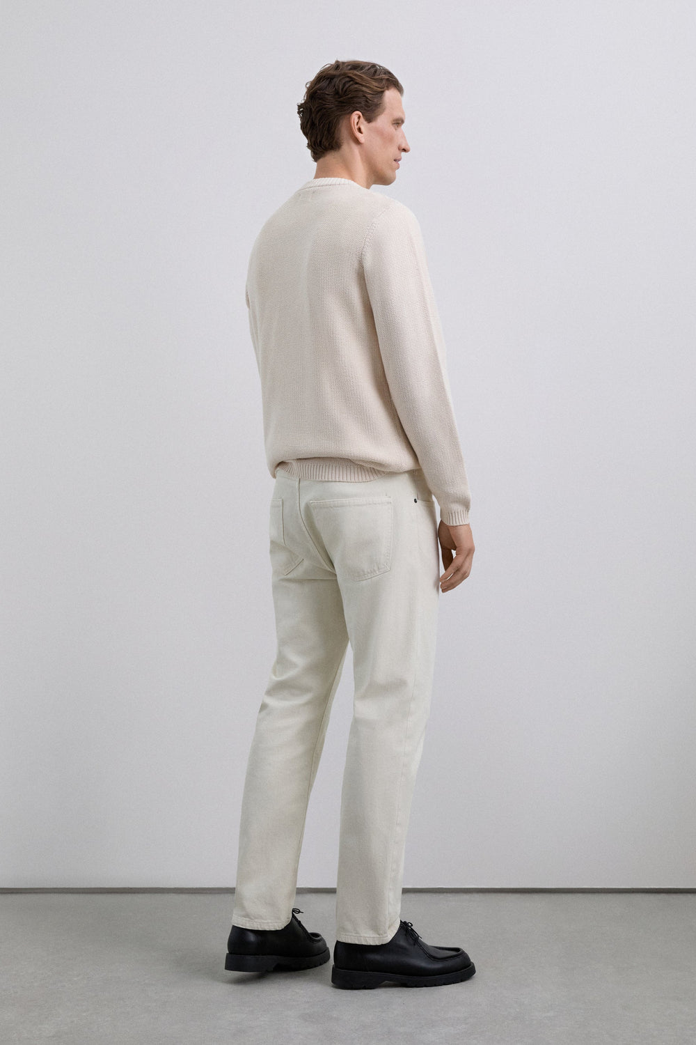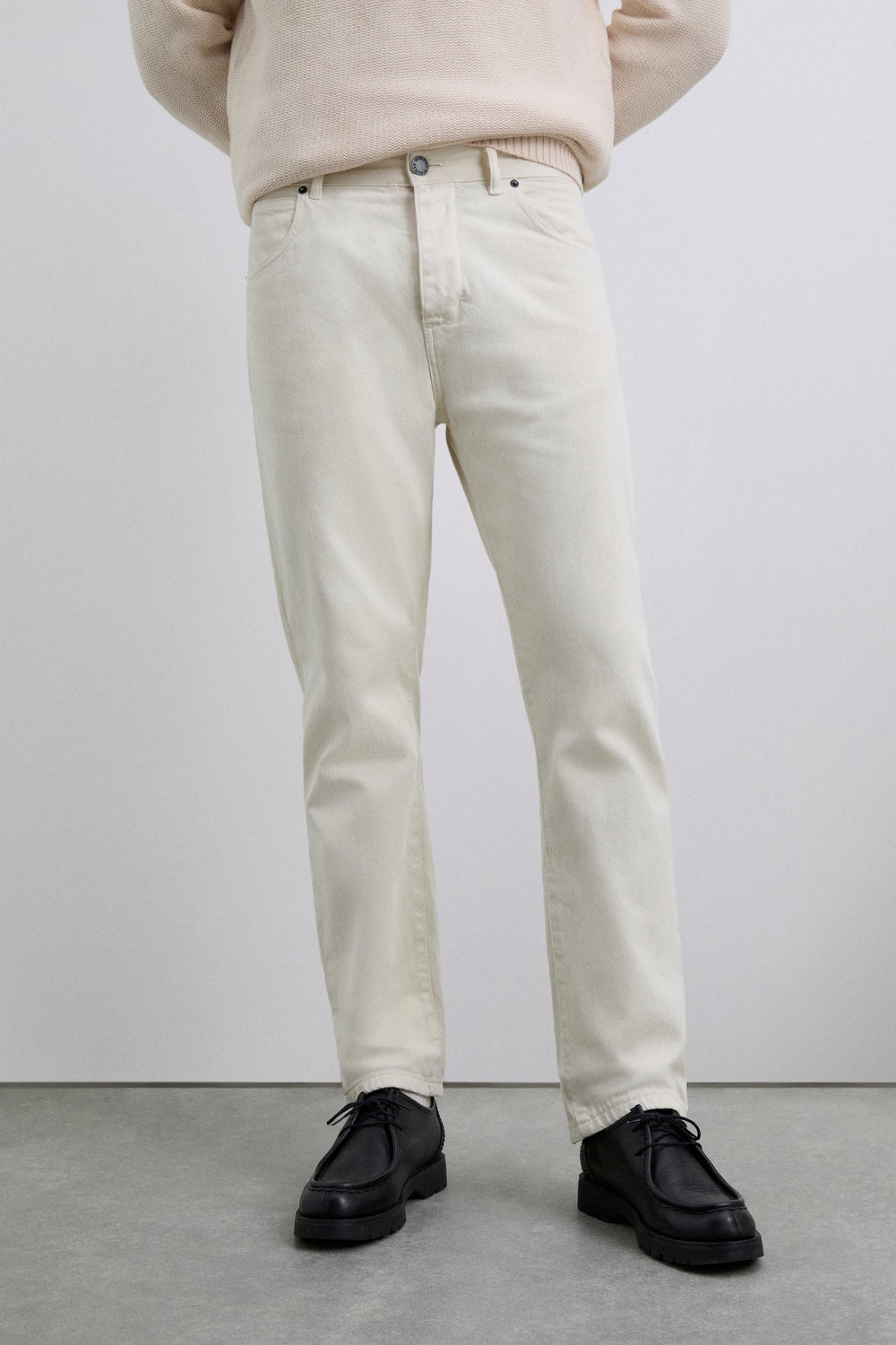 Pantalón confeccionado en 100% algodón. Corte recto. Cierre mediante botón y cremallera. Bolsillos laterales y traseros. Trabillas en cintura.