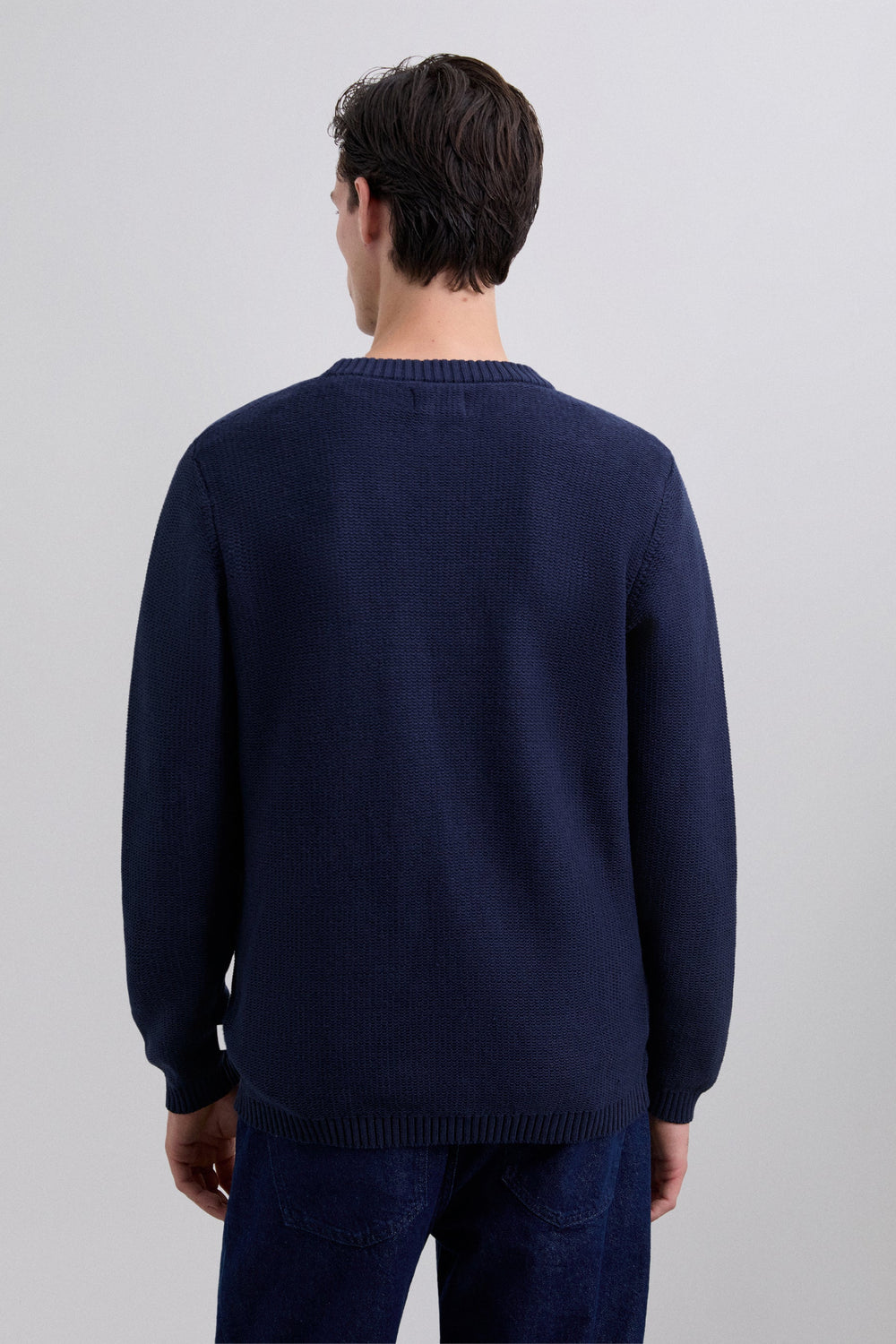Jersey confeccionado en 100% algodón BCI. Cuello redondo. Manga larga. Corte Regular. Acabados en rib.
